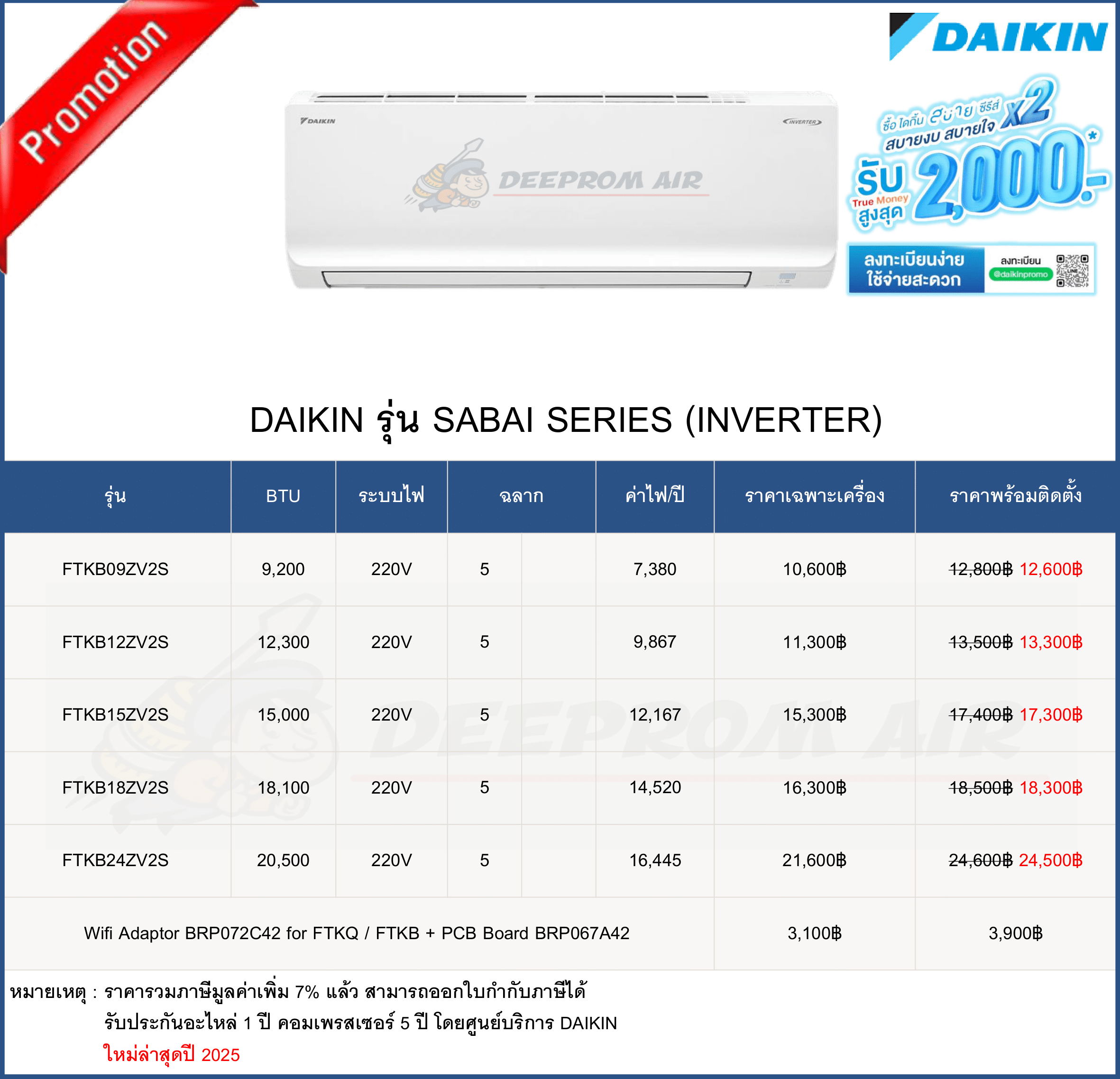 โปรโมชั่นแอร์ไดกิ้น ราคาพิเศษ และรูดบัตรรับแคชแบ็คสูงสุด 7% และยังมีโปรไดกิ้นคุ้มดีมีคืนอีกด้วย