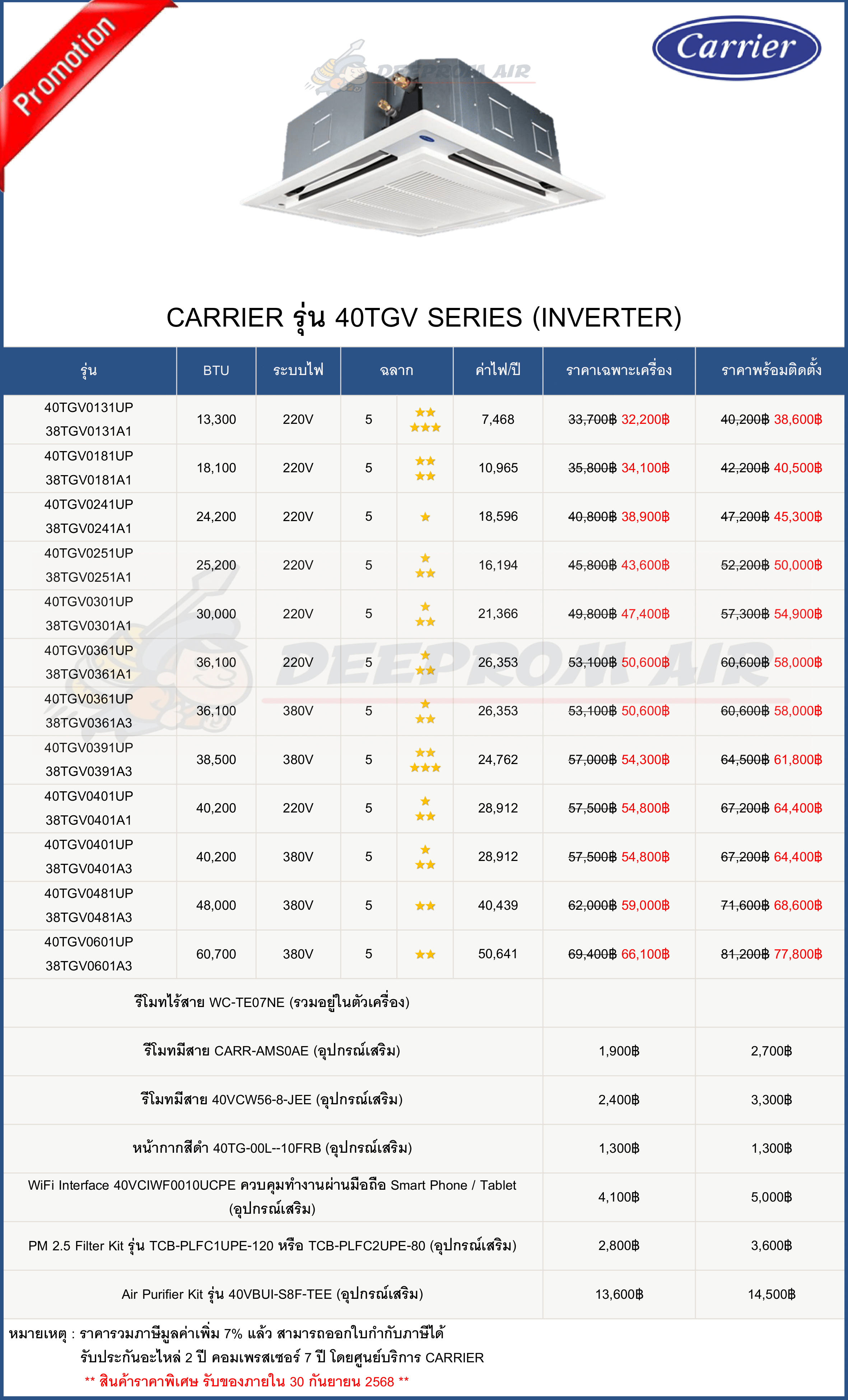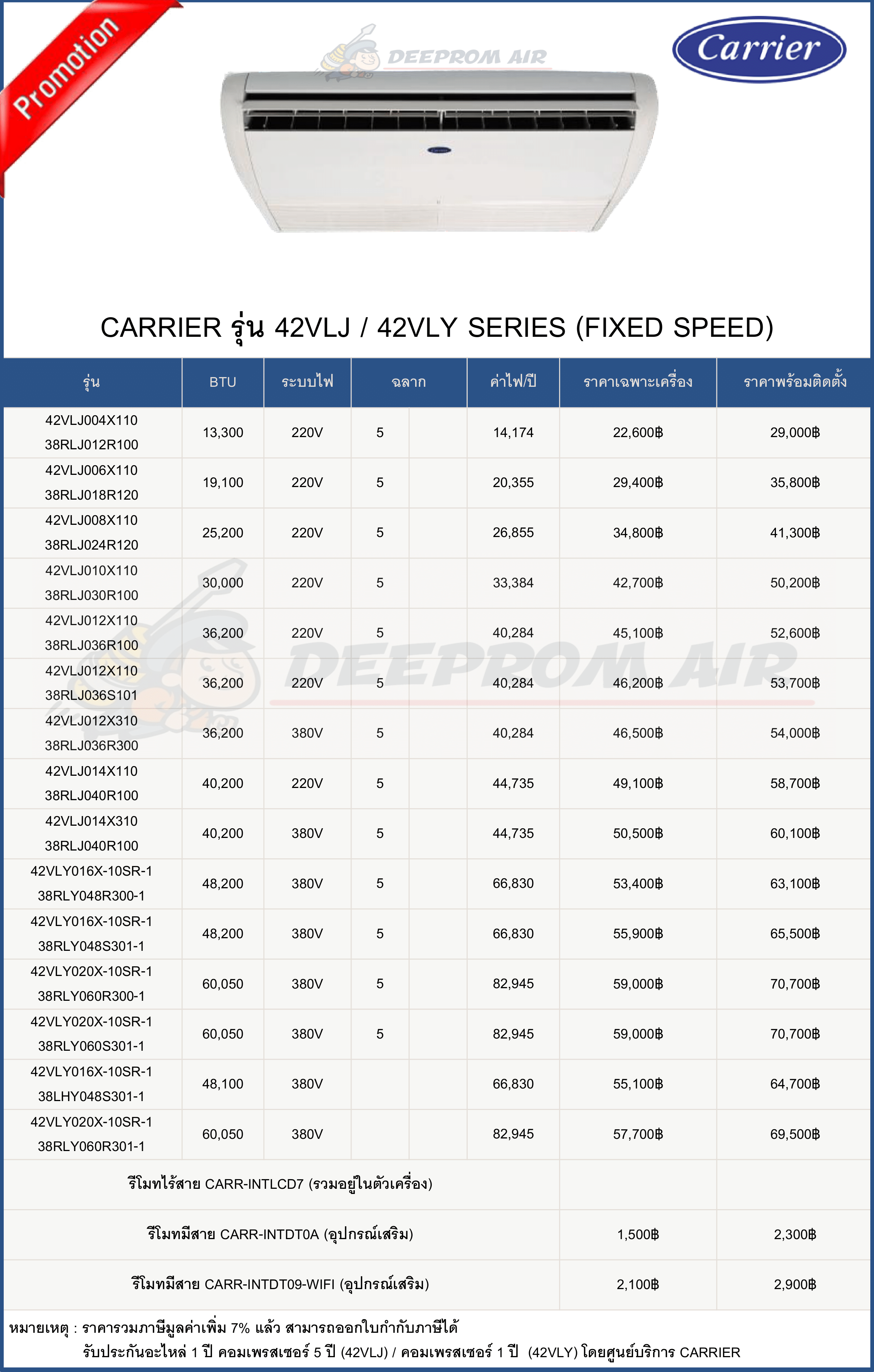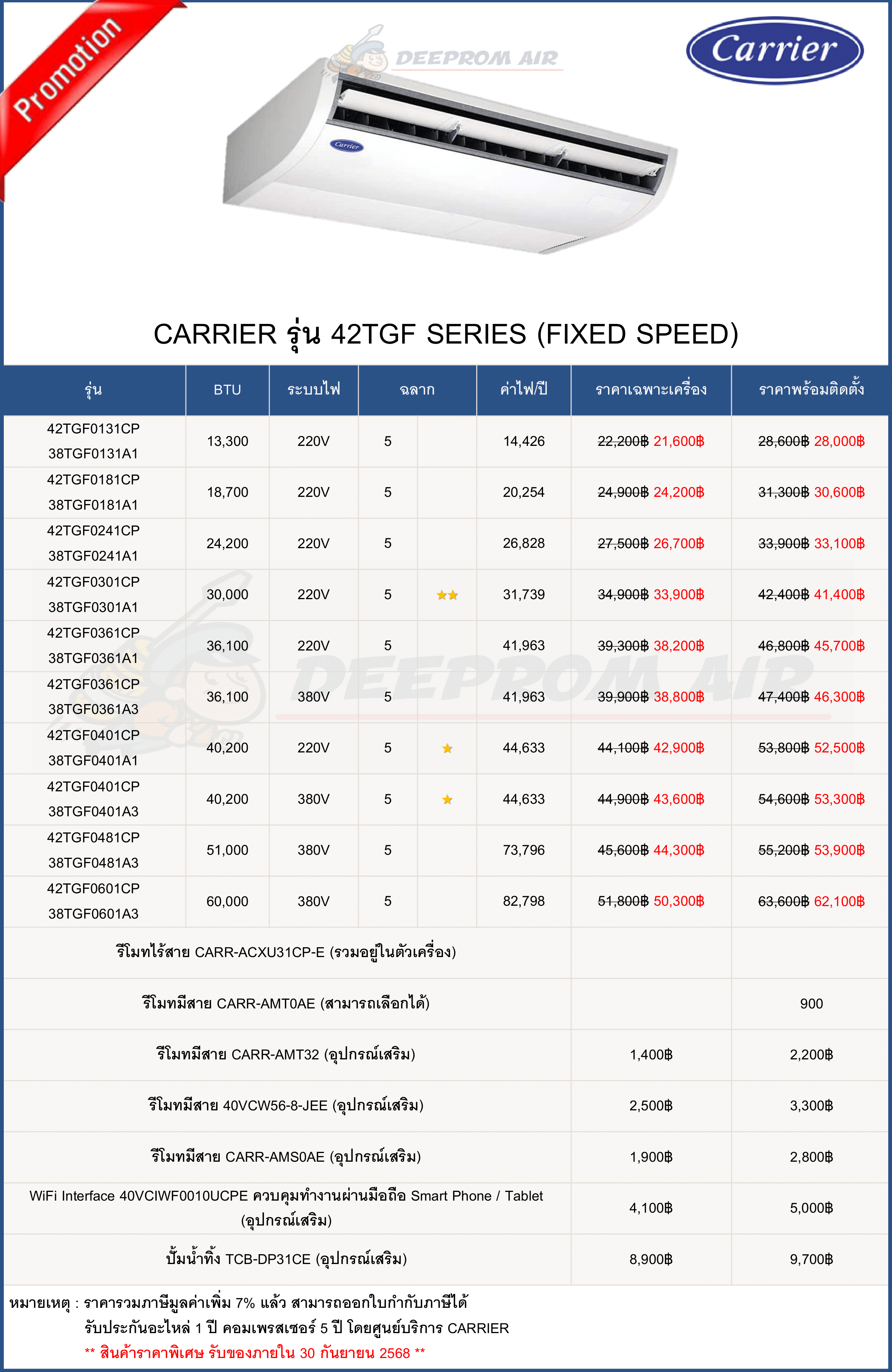 ฟรี ค่าแรงติดตั้งและอุปกรณ์มาตรฐาน มีรายการดังนี้