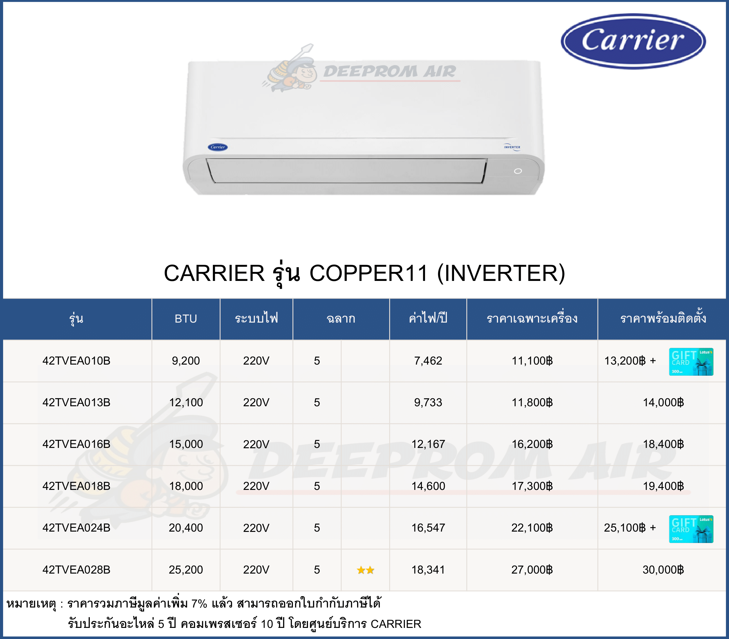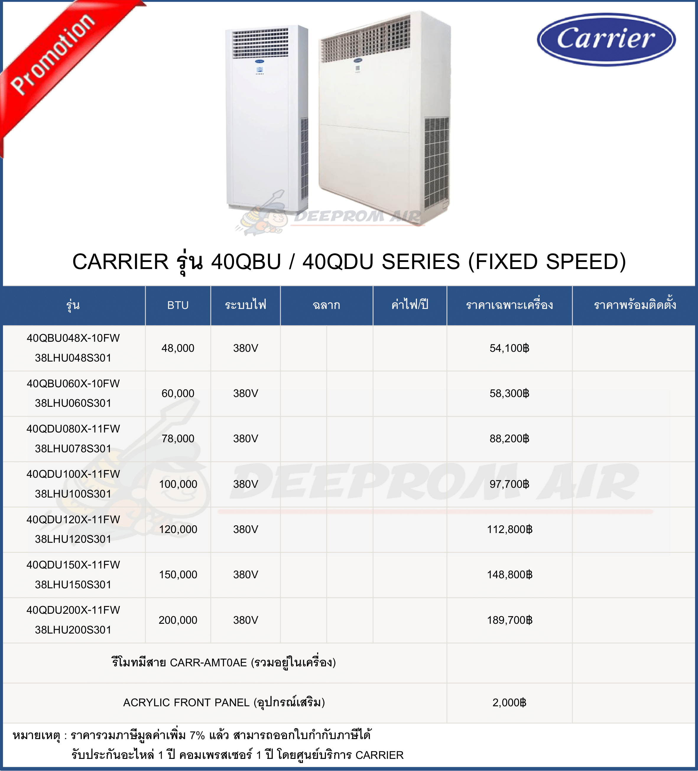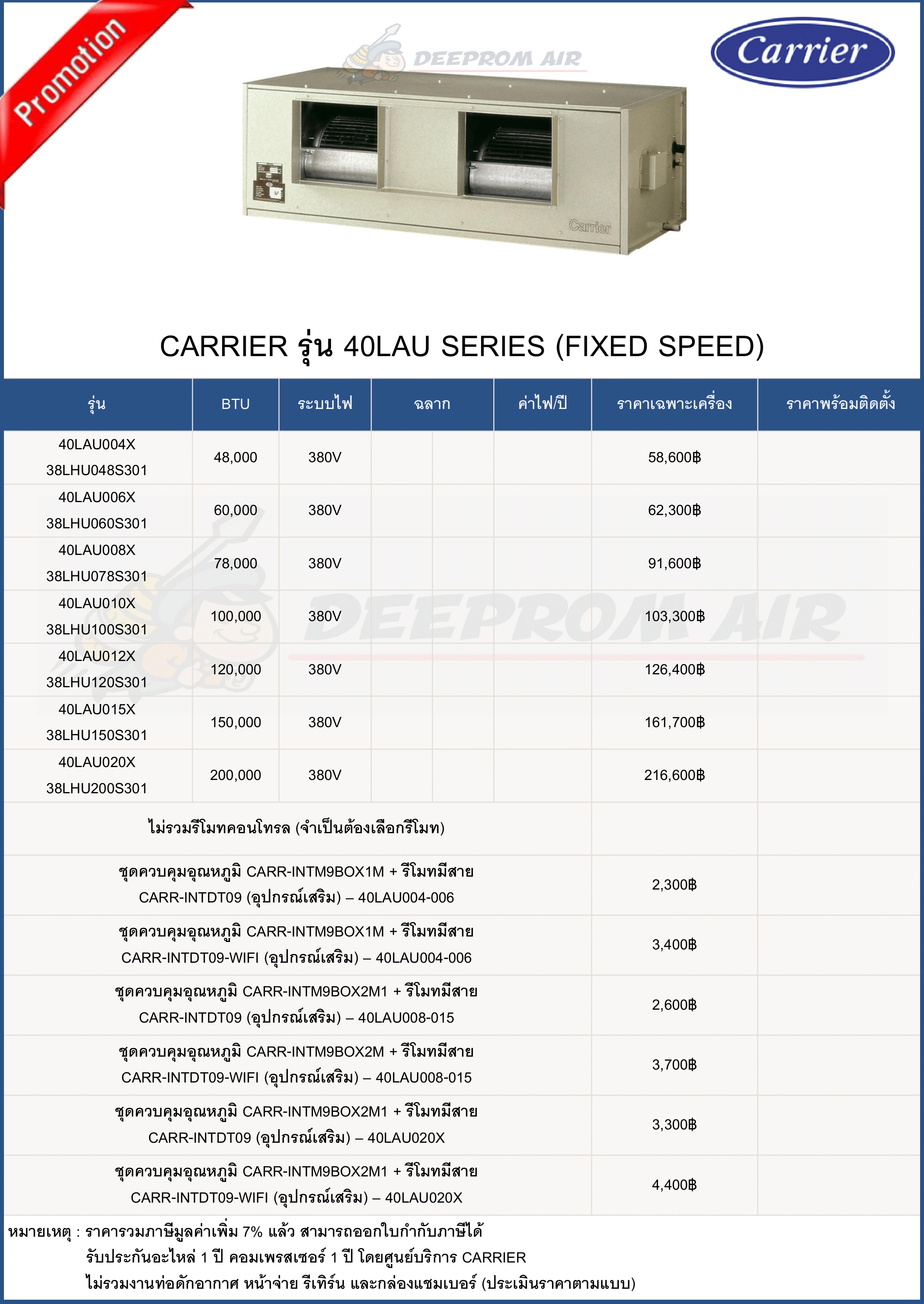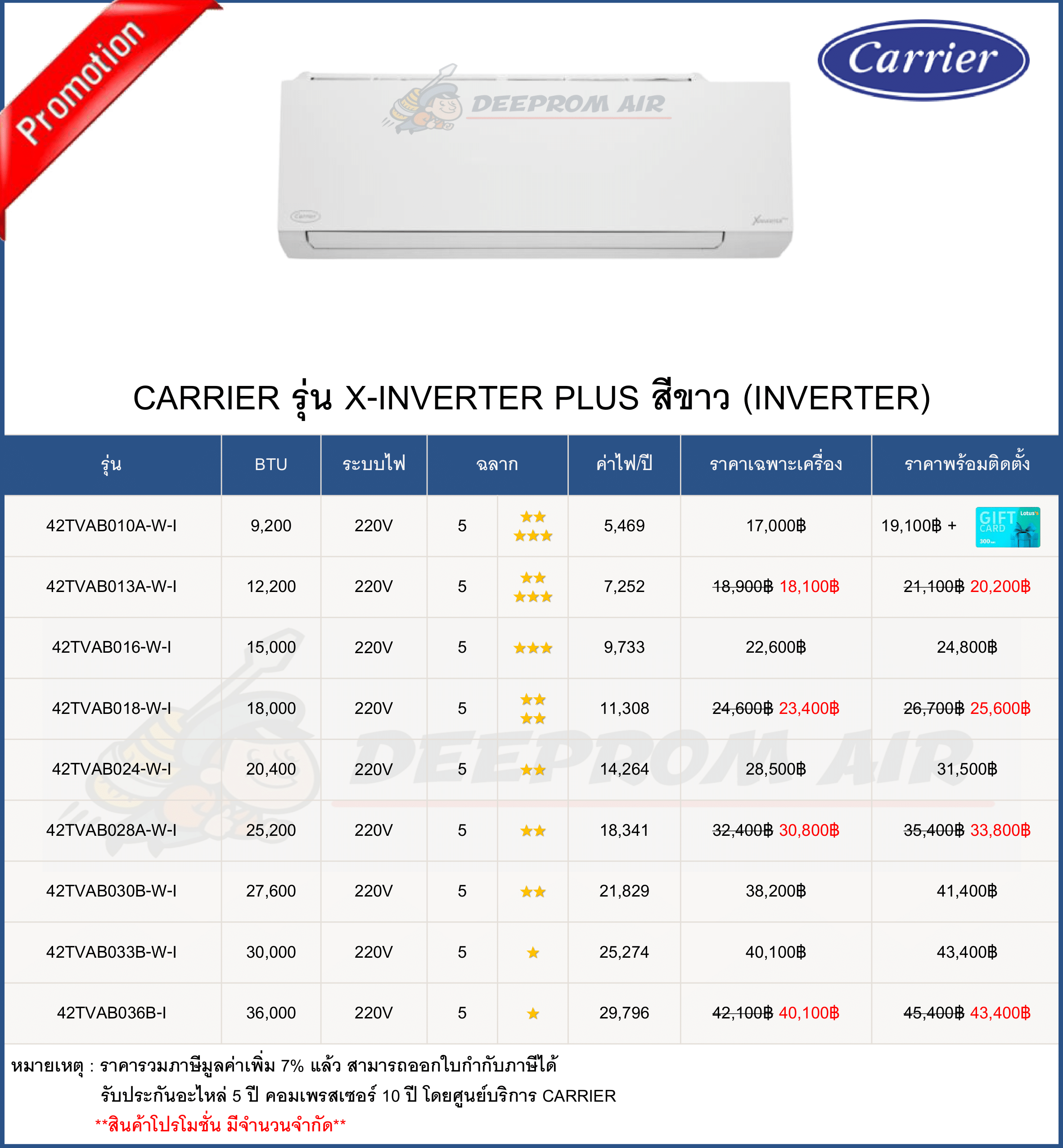 ฟรี ค่าแรงติดตั้งและอุปกรณ์มาตรฐาน มีรายการดังนี้