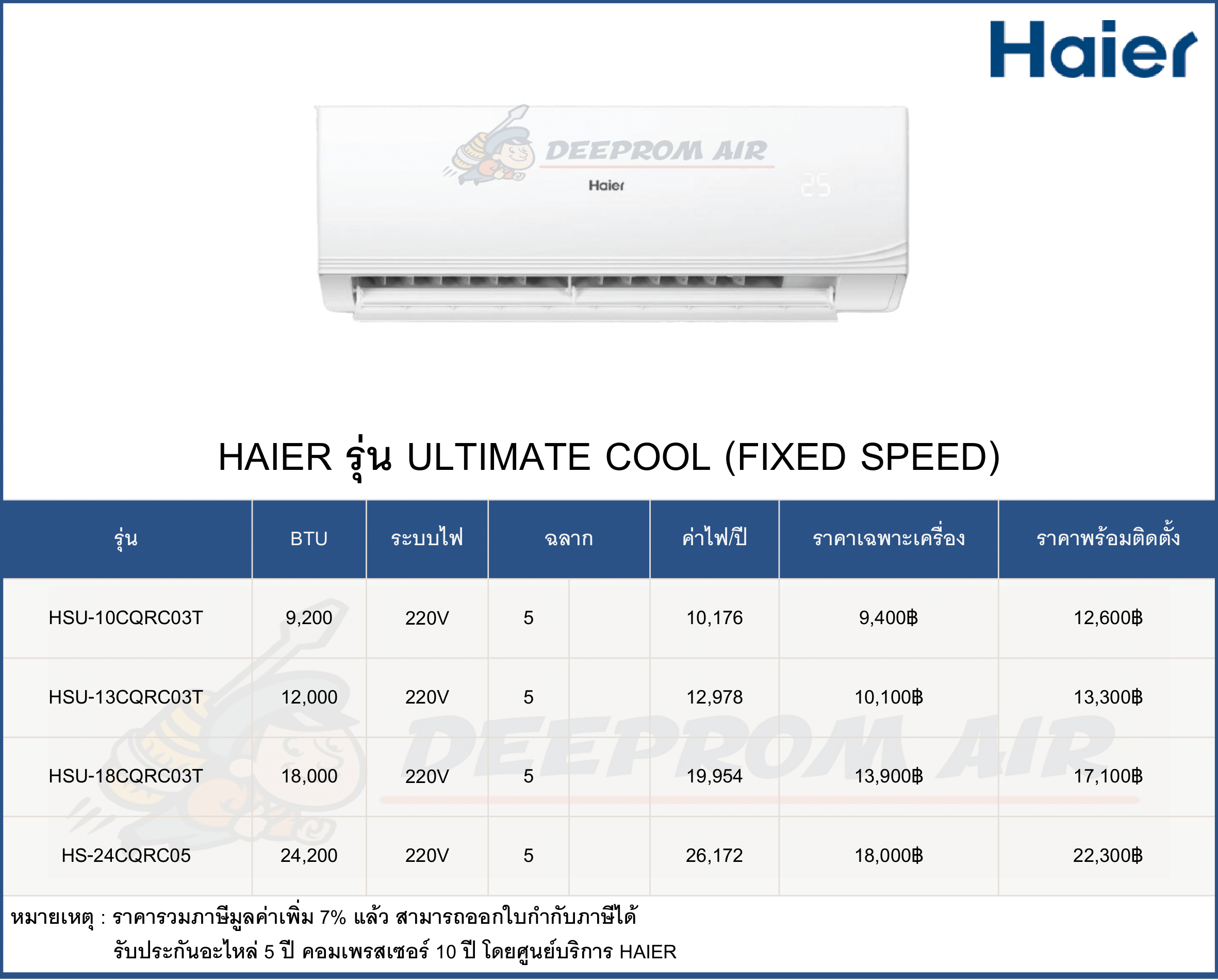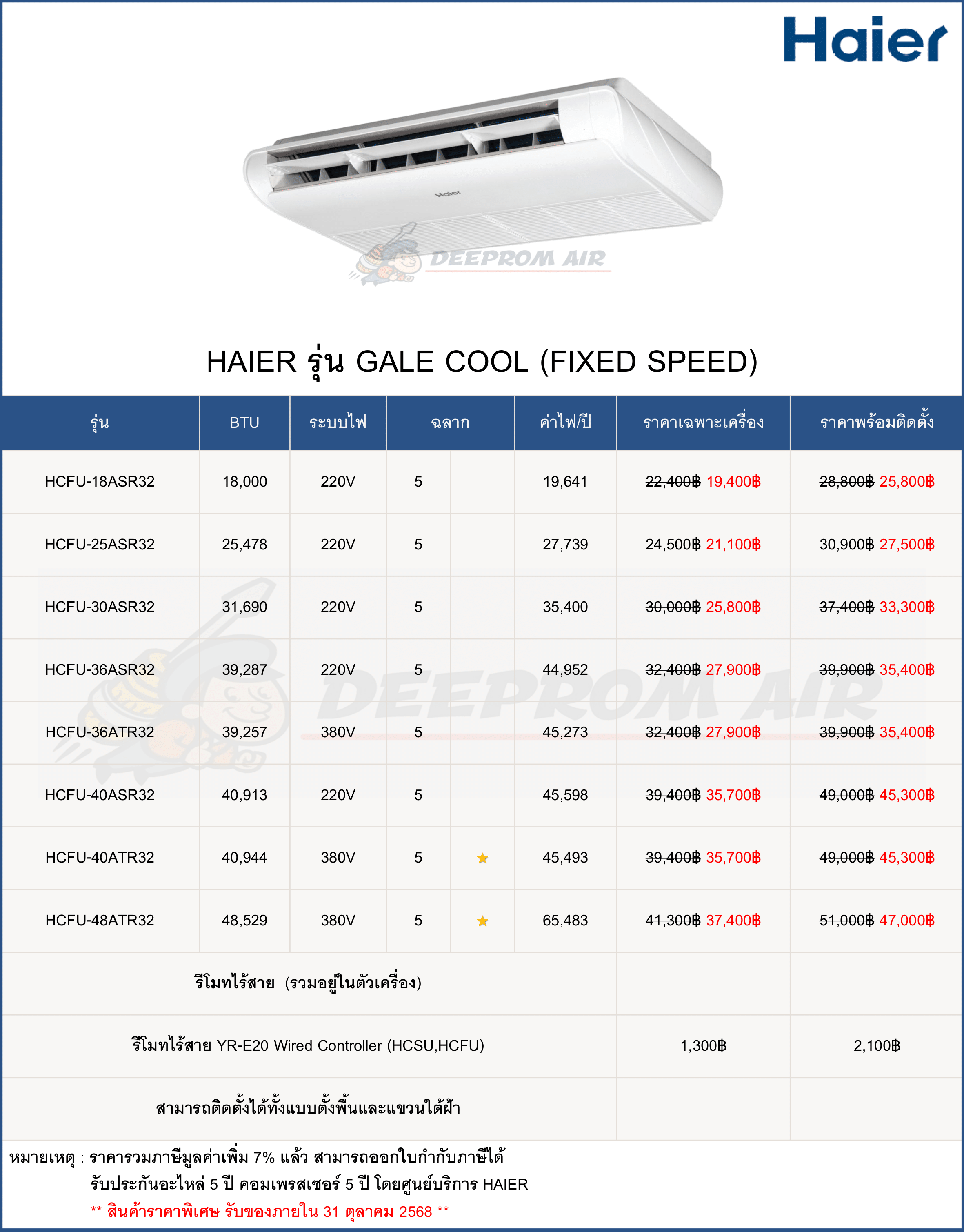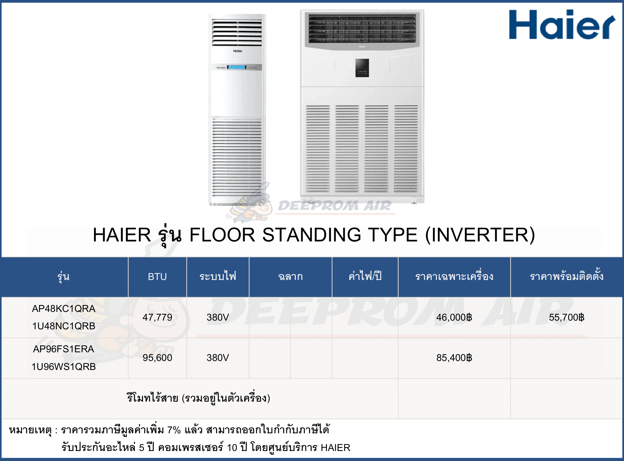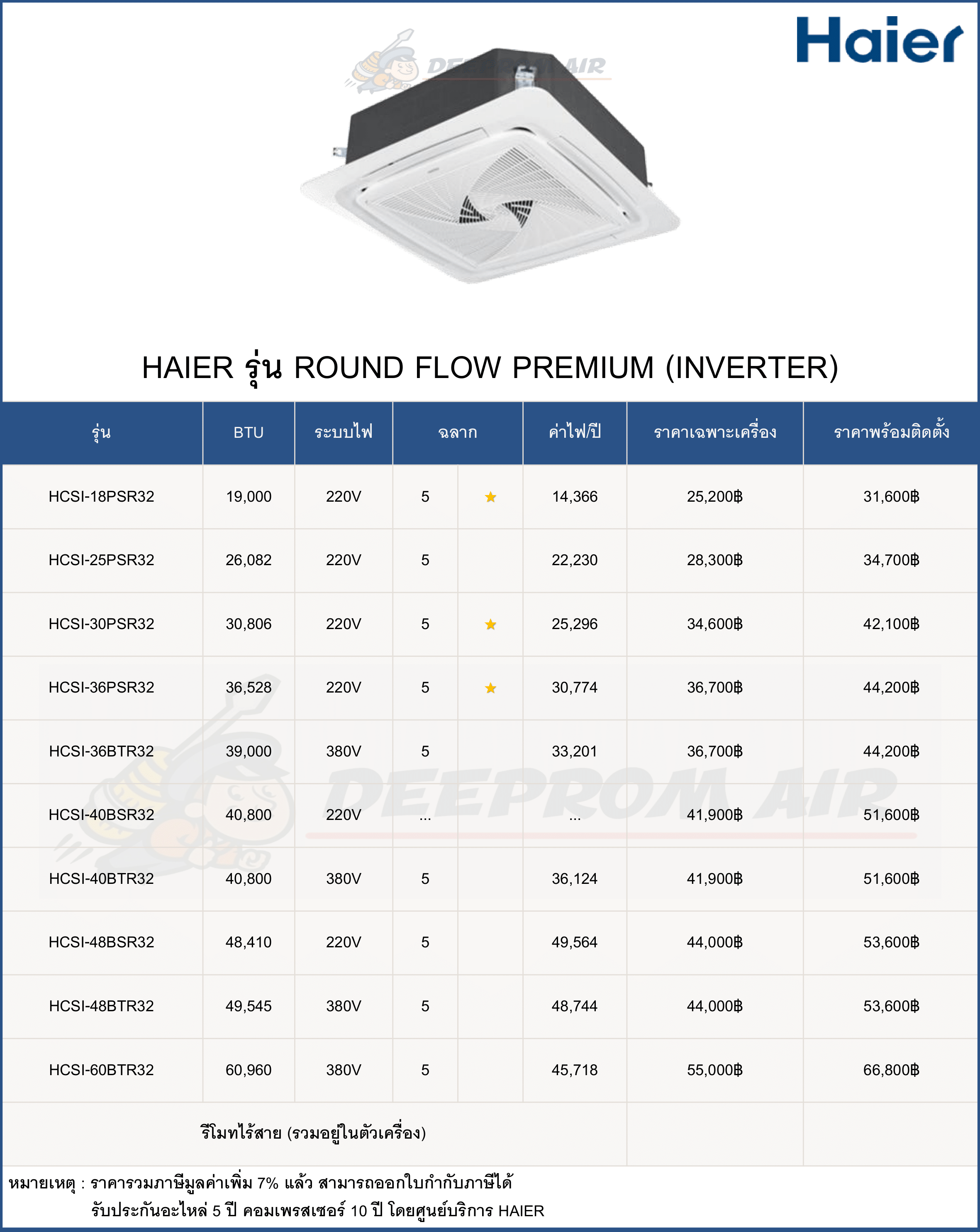 ฟรี ค่าแรงติดตั้งและอุปกรณ์มาตรฐาน มีรายการดังนี้