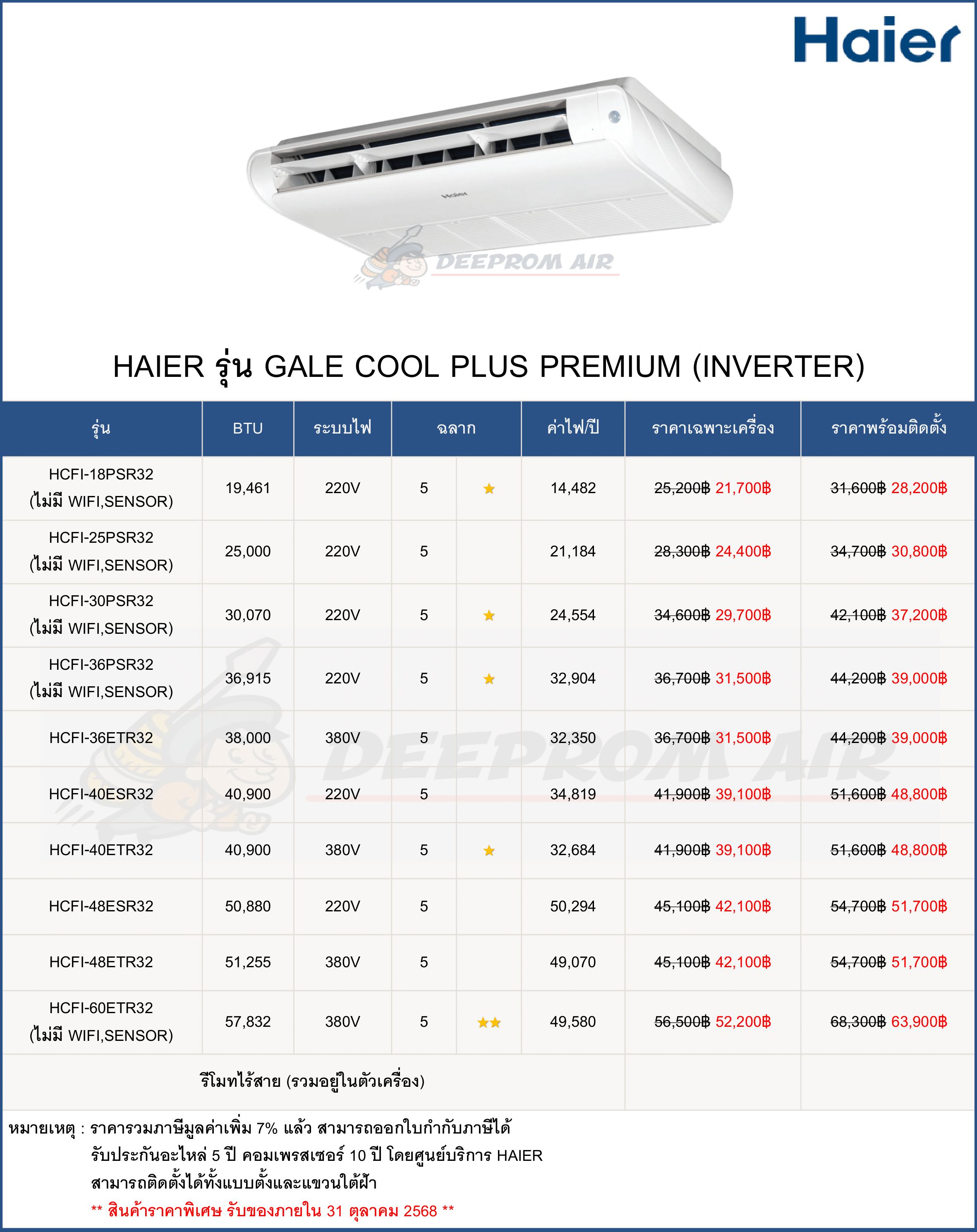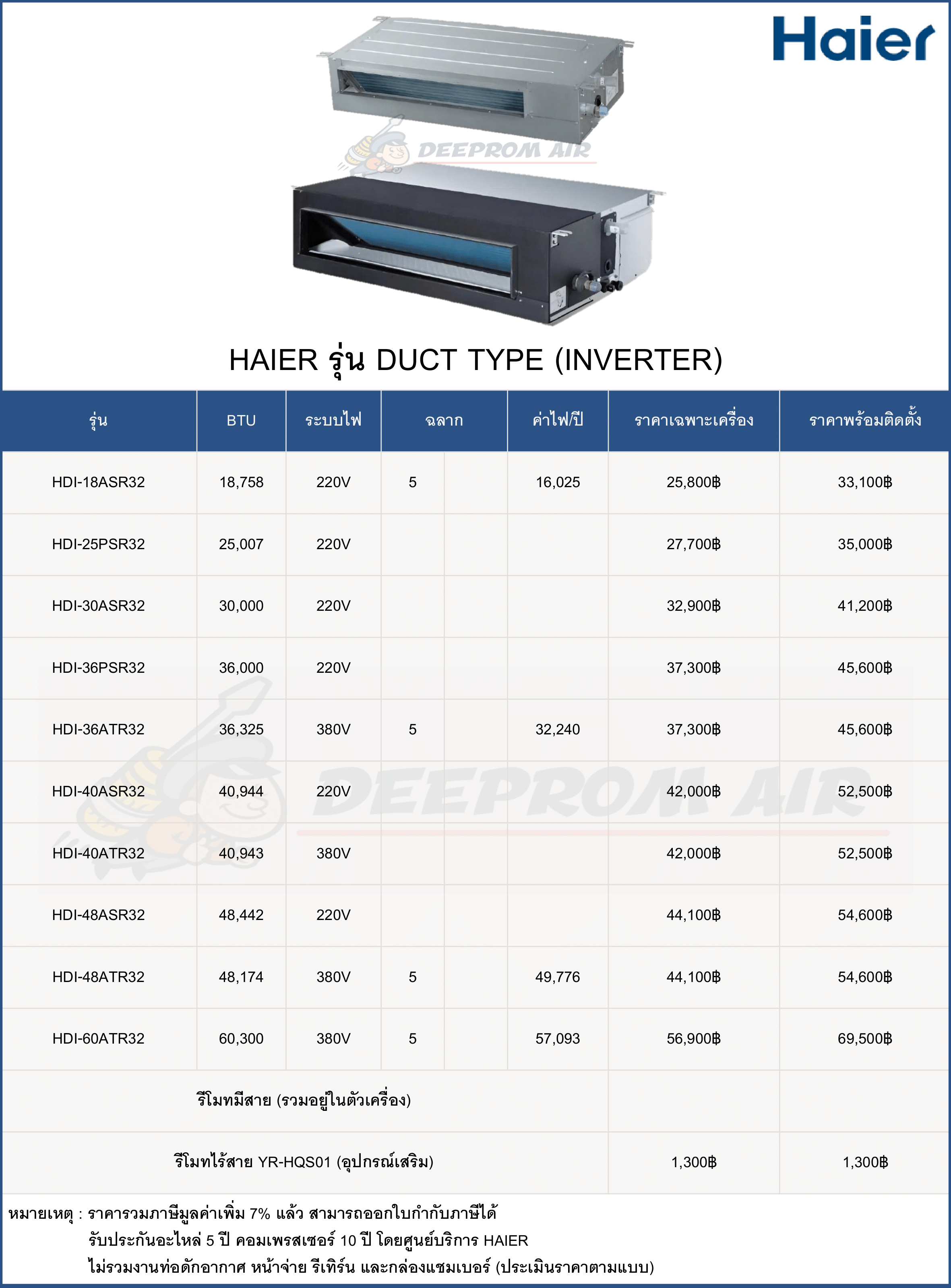 ฟรี ค่าแรงติดตั้งและอุปกรณ์มาตรฐาน มีรายการดังนี้