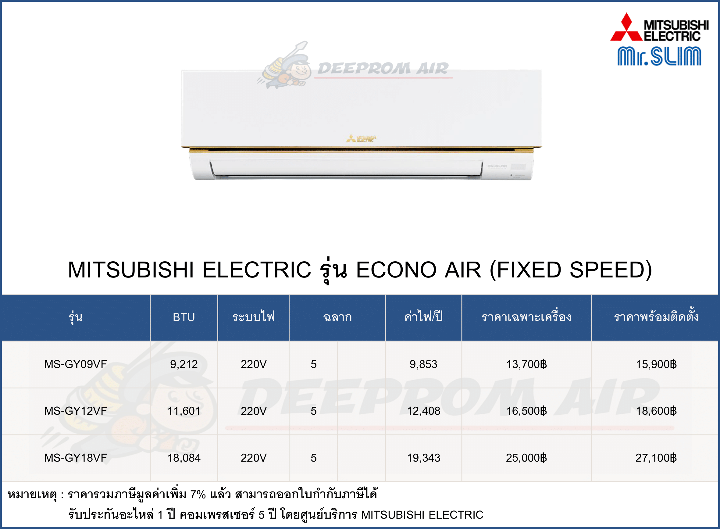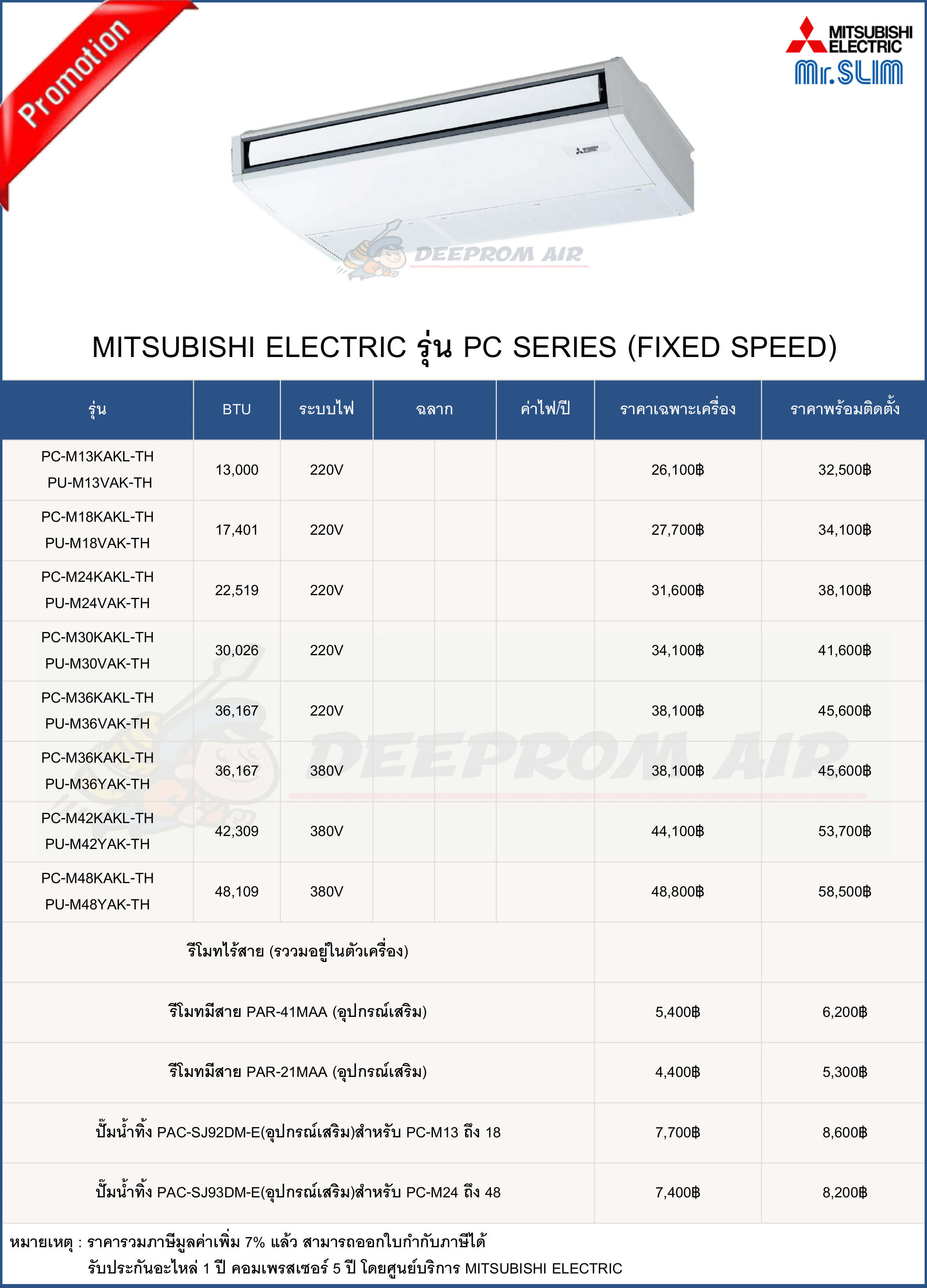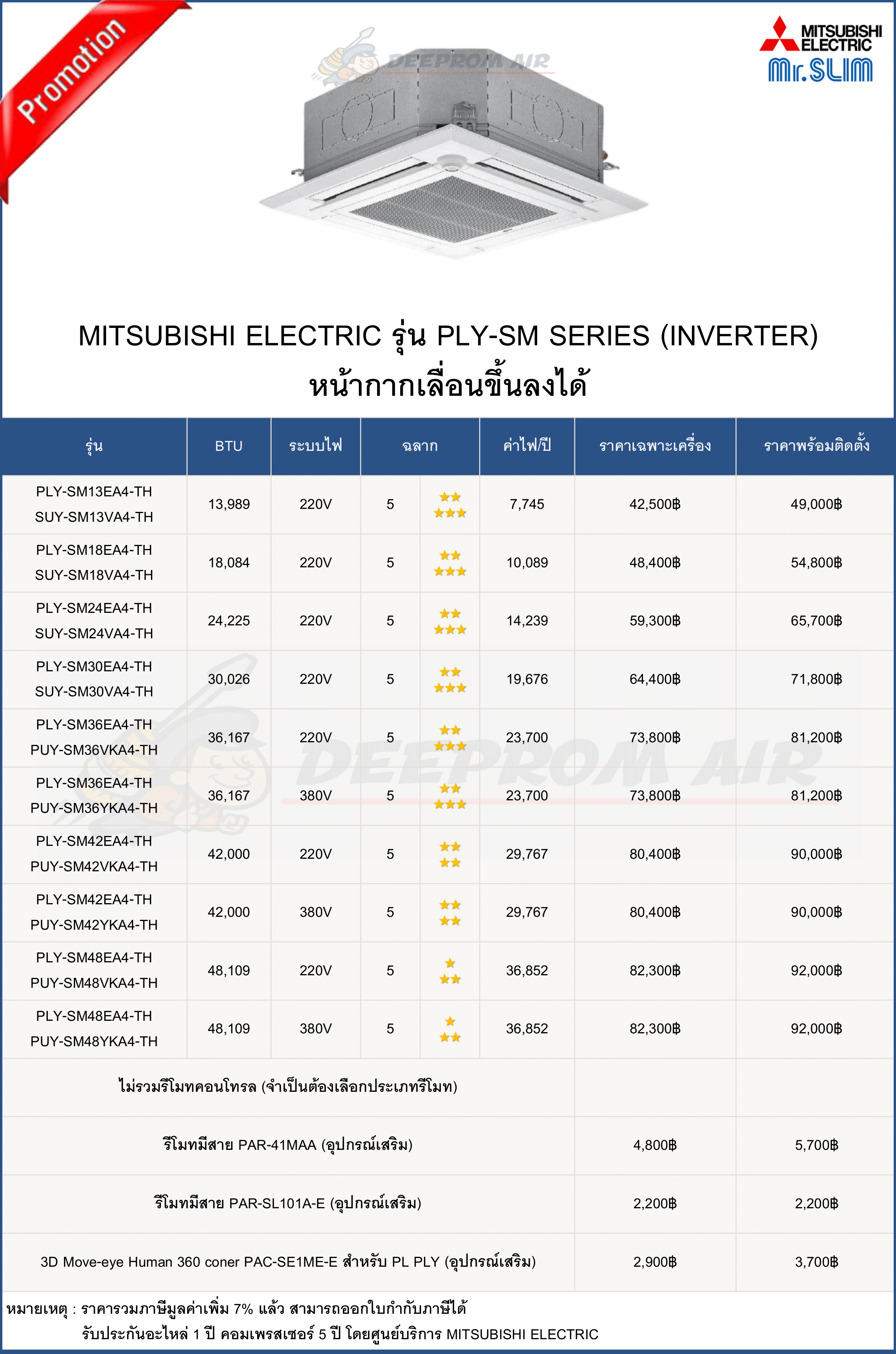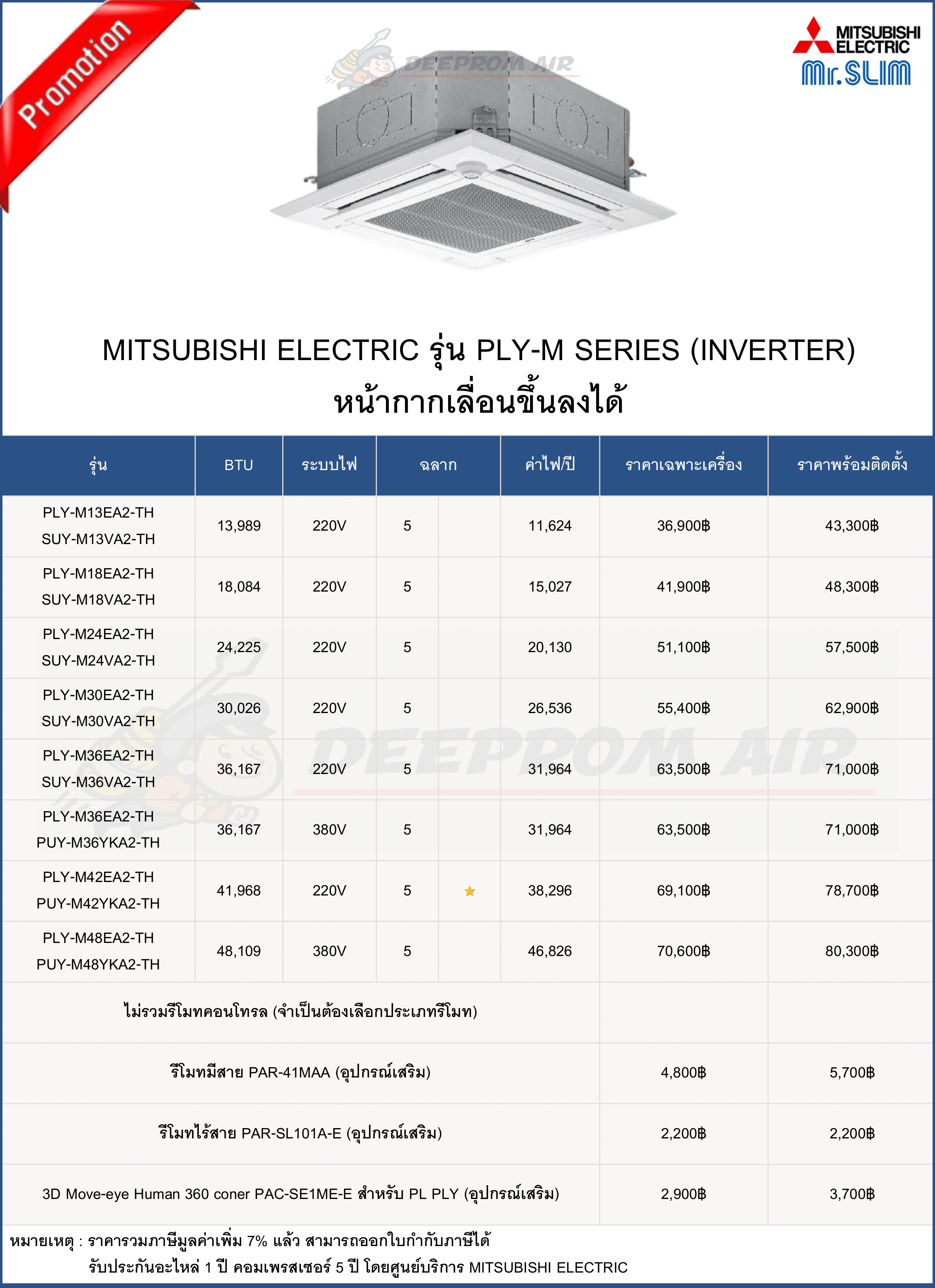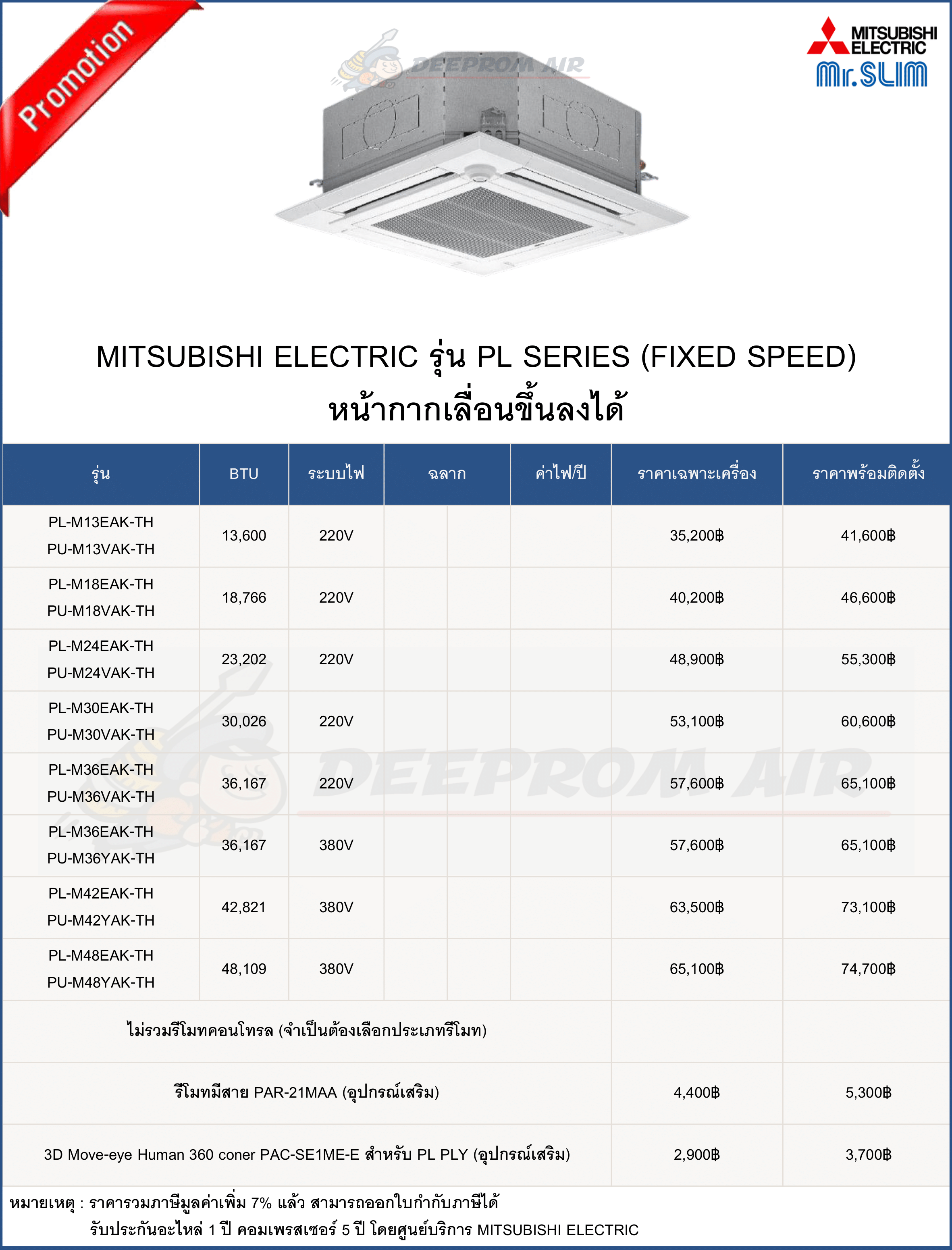 ฟรี ค่าแรงติดตั้งและอุปกรณ์มาตรฐาน มีรายการดังนี้
